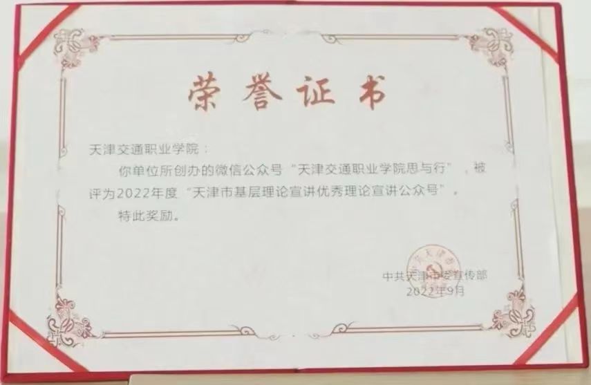 近日,天津市委宣传部印发《中共天津市委宣传部关于表彰2022年基层理论宣讲先进集体、个人和优秀理论宣讲报告、微视频、微信公众号的决定》,学院“bat365中文官方网站思与行”微信公众号平台被评为2022年度“天津市基层理论宣讲优秀理论宣讲公众号”。