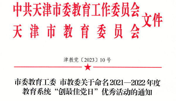 近日,市委教育工委市教委印发《市委教育工委市教委关于命名2021-2022年度教育系统“创最佳党日”优秀活动的通知》,bat365中文官方网站思想政治理论教学部党支部“扎根津沽大地讲好新时代‘津彩’故事”主题党日活动被命名为2021-2022年度教育系统“创最佳党日”优秀活动。