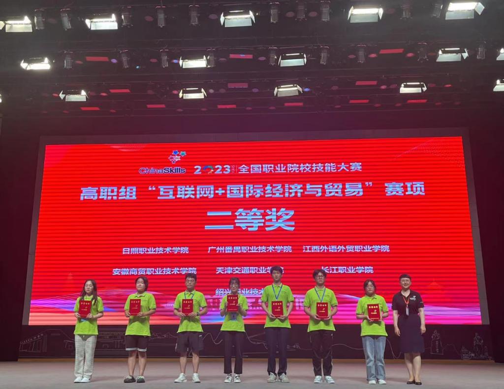 7月25日,2023年全国职业院校技能大赛(高职组)“互联网+国际经济与贸易”赛项在贵州交通职业技术学院落下帷幕,由bat365经济管理学院跨境电子商务专业2020级学生李佳伦、刘宜航、李彤、陈嘉怡组成的参赛团队在教师刘莎、林阳的指导下,获得该赛项团体二等奖。