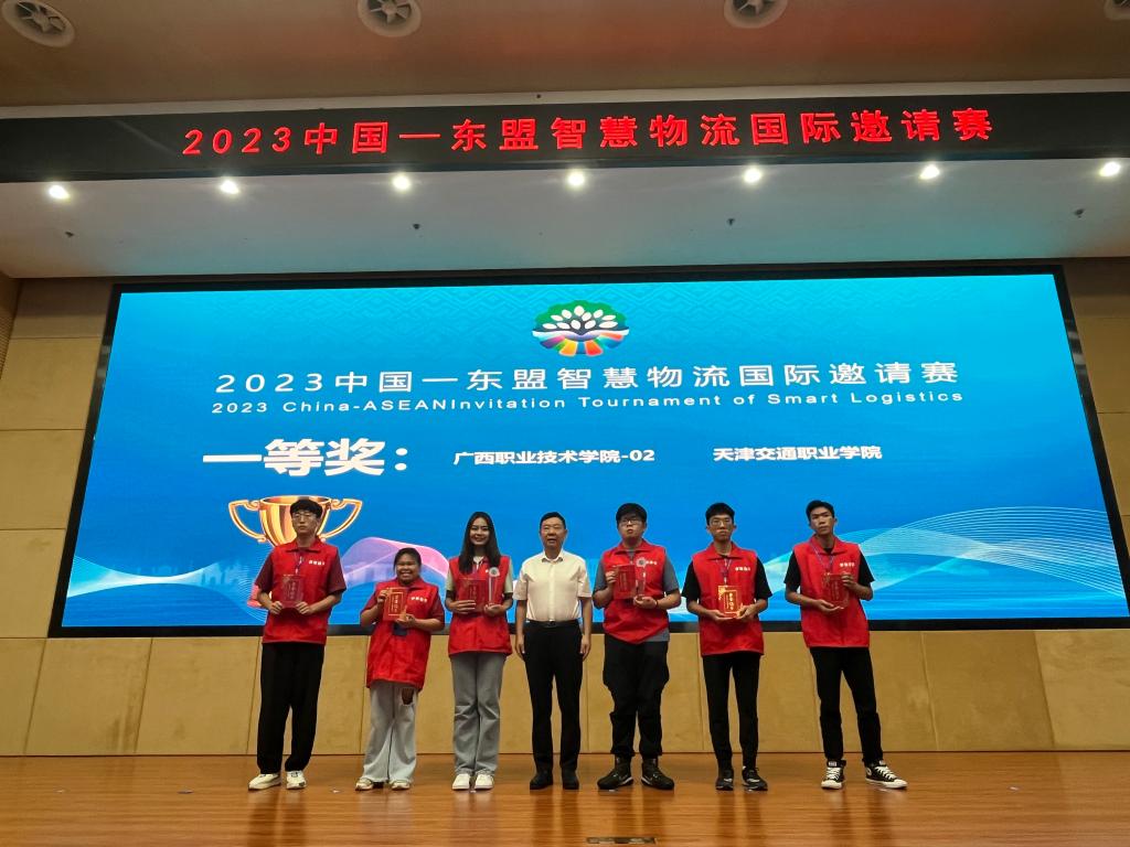 2023中国—东盟职业教育联展暨论坛的技能竞赛项目之一智慧物流国际邀请赛于2023年9月15-16日在广西职业技术学院举办。此次大赛有来自柬埔寨、老挝、马来西亚等7个东盟国家的36名留学生和18名来自江苏、天津等7个地区的中国学生共同组成了18支参赛队伍,以2个东盟国家留学生+1个国内学生的“2+1”团体赛模式参赛。