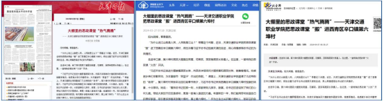 3月27日天津日报、津云、北方网等主流媒体以《大棚里的思政课堂“热气腾腾”》为题对学院把思政课堂“搬”进西青区辛口镇第六埠村进行了宣传报道,起到了良好的社会影响。