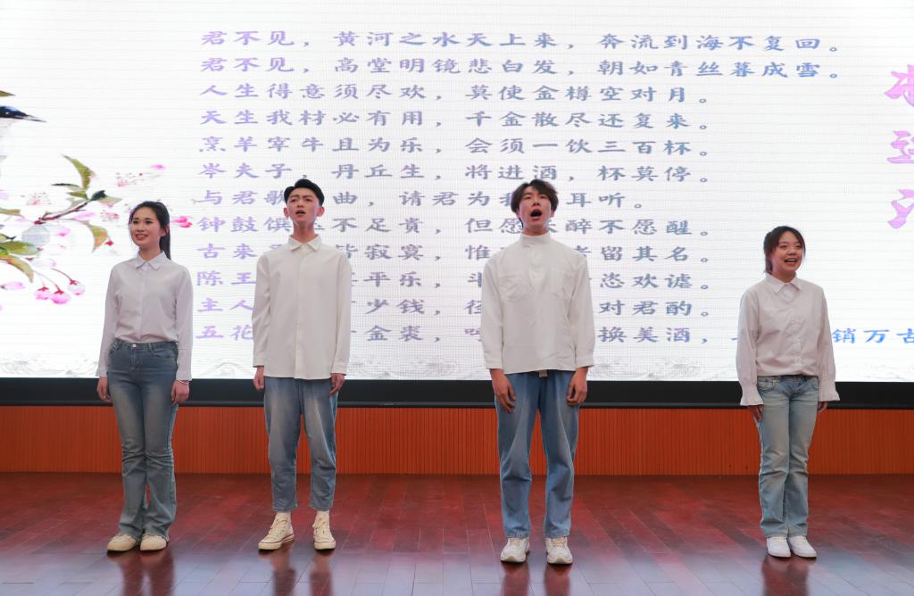 中华优秀传统文化是是中华文明的智慧结晶和精华所在,深深植根于青年学子内心之中,潜移默化影响着他们的思想方式和行为方式。学生们通过“唐诗书韵”的情景剧和“融在中华儿女血脉里的盛唐佳作”的配乐诗朗诵两个精彩的演出,充分展现了学院学生用中国话语和中国叙事表达对时代的热爱,对传统文化的理解。