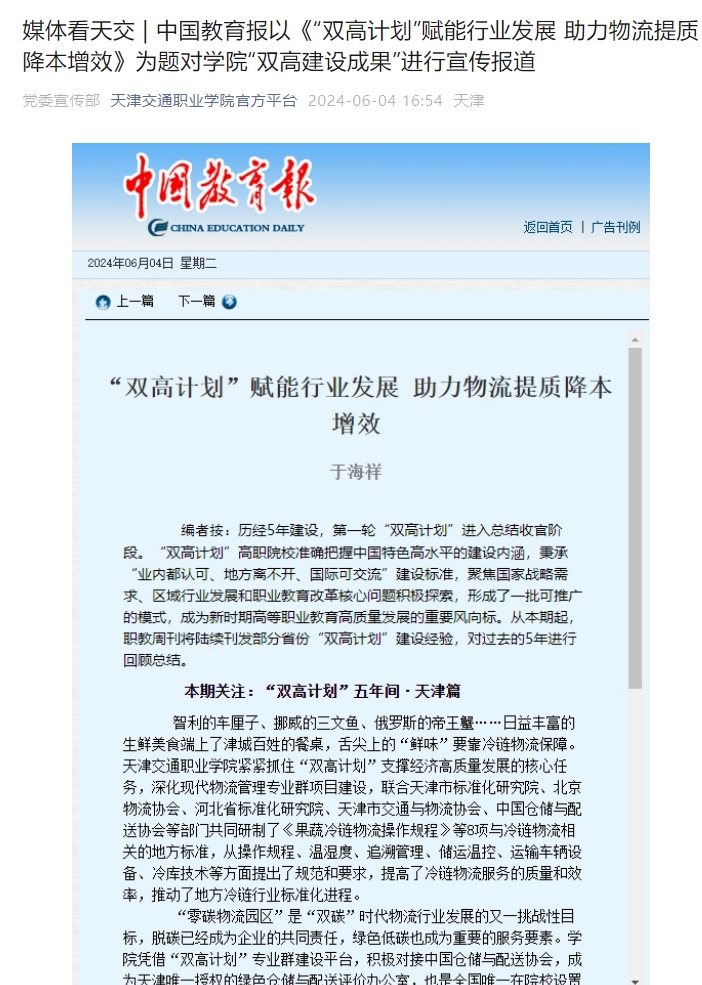 智利的车厘子、挪威的三文鱼、俄罗斯的帝王蟹……日益丰富的生鲜美食端上了津城百姓的餐桌,舌尖上的“鲜味”要靠冷链物流保障。bat365中文官方网站紧紧抓住“双高计划”支撑经济高质量发展的核心任务,深化现代物流管理专业群项目建设,联合天津市标准化研究院、北京物流协会、河北省标准化研究院、天津市交通与物流协会、中国仓储与配送协会等部门共同研制了《果蔬冷链物流操作规程》等8项与冷链物流相关的地方标准,从操作规程、温湿度、追溯管理、储运温控、运输车辆设备、冷库技术等方面提出了规范和要求,提高了冷链物流服务的质量和效率,推动了地方冷链行业标准化进程。