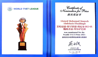 图为艾哈迈德教授荣获“2024年世界职业教育大奖提名奖”证书